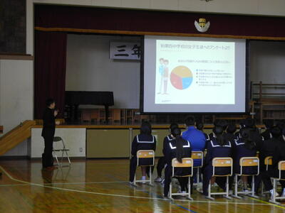 2月27日(火)1校時、3年生は体育館にて性教育を実施しました。