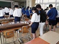 1年生のみ一クラス3時間の授業を予定しています。第1回目の今日は、琴の説明に続き、実際に全員が音を出していました。初めての演奏ですが、丁寧な指導により、いい音を響かせることができていました。最終回には簡単な曲を弾くと言うことですので仕上がりが大変楽しみです。