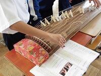 1年生の音楽で、特別非常勤講師の朝生真美先生をお招きし、日本の伝統楽器「琴」のご指導をいただきました。