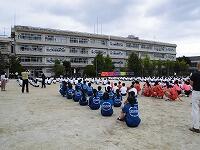 6月30日(水)6校時 全校生徒による「総合体育大会・各種コンクール壮行会」が行われました。3密を避けるため校庭での開催です。