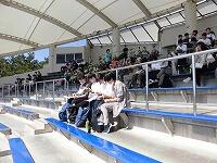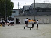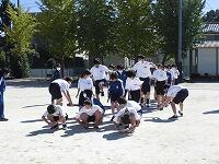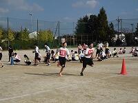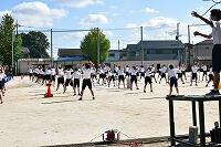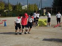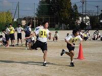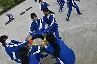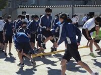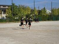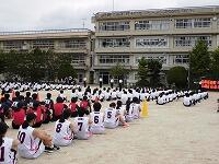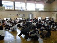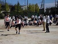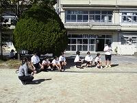 いわゆる「八の字跳び」と「大長縄(全員で一緒に跳ぶ奴です。)」の2種目です。運動不足なのか体力的に辛そうな生徒もみられますが、皆真剣そのもの。大長縄では何度も「せーの~」というかけ声でタイミングを合わせます。回し手は1秒も無駄にしまいと間髪入れずにかけ声を・・・、跳ぶ方は必死でついていきます。しかしながらとても温かな雰囲気で、終了時には、自然発生的に自分たちのチームへの拍手が起きていました。