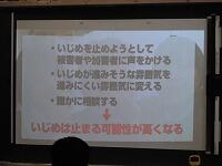 さて、この授業では、いじめが起きている時に、いじめを止めようと、行動できる人と、行動できない人との差異はあるものの、どちらにしても学級内の「いじめられている人を心配する雰囲気」が強いといじめは止めやすいという話がありました。さらに「クラスの雰囲気は一人ひとりが作っていくもの。毎日の一人ひとりの態度が大切です。」との言葉が印象的でした。ぜひ、困っている人がいたら、放っておかない温かなクラスにして欲しいですね。