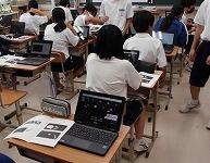 説明する教師側も、まだまだ分からないことが多いです。そのような状況下でも生徒達は、電源のon、offやデータの保存、動画撮影、スクリーンショットの使用等、生き生きした表情で積極的に学び、互いに教え合う姿も見られました。