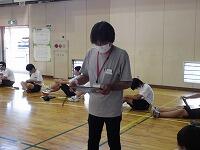 学年委員の説明を聞く生徒達。 教師役も生徒が行います。
