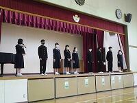 式典や歌声に対する心構えやお辞儀の仕方等の指導が担当教員からありました。下級生が教室でどの程度できていたかはわかりませんが、体育館で練習していた3年生のお辞儀や起立、着席等の作法は大変立派でした。この3年生の有志を後輩達に直接見せられないことが残念でなりません。下級生は卒業式当日もリモートでの参加となりますが、できる限りの姿を目に焼き付けて欲しいと思います。