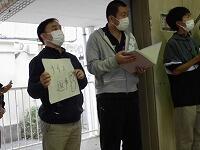 熱心な練習態度です。 質問に答え、実際に立ち位置の説明をする学年委員