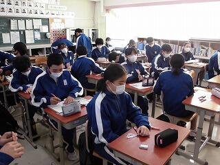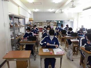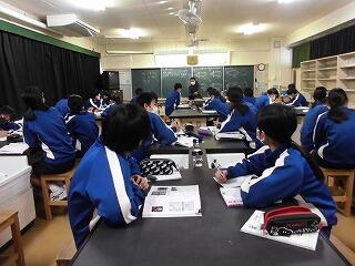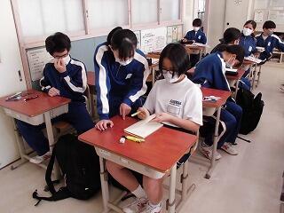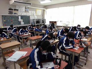 1年生各クラスの生徒達:皆、真剣な表情で取り組んでいました。