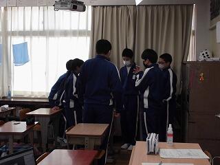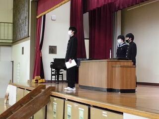 進行中に生徒からの質問も出ていましたが、学年委員がしっかりと答え、説明していました。教師が説明するよりも時間はかかりますが、自分たちの手で卒業式を作るという意味では、大変意義深いことだと思います。義務教育の最後の儀式、生徒達が作り上げる生徒達の卒業式です。当日までの練習経過を思い浮かべながら参列していただけると、その立派さがさらに際立ってくるのではないかと思います。卒業まで残り7登校日です。(文責 飯田)