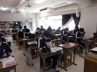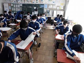 1年生は、次年度実施予定の「林間学校」の予察報告を聞いた後、タブレットを利用して福島県についての調べ学習をしていました。林間学校に関しての活動は今日が初めてということで、まだ知らないこと、わからないことばかりだと思いますが、これから地理的な特徴や訪問先の歴史等についてしっかりと学んでいって欲しいと思います。6月初旬の実施日まで4ヶ月余り、コロナ感染の終息を祈ります。