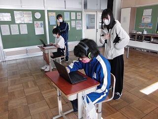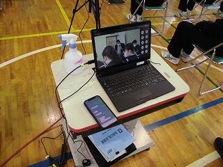 ところで、体育館から各教室へのリモート配信ですが、やはり一筋縄ではいかない部分があります。今まで様々な場面で何度もリモート配信をしてきましたが、簡単なことではないようです。最近は配信元(今回は体育館)と、受信先(今回は各教室)とで、職員が携帯電話を使って連絡を取りあい、それに合わせて進行しています。なぜか受信できないとか、途中で切れてしまう等のトラブルもあります。「リモート実施」を発案するのは簡単ですが、実働の先生たちの努力に支えられているということも忘れてはなりません。3年生が下級生にバトンを渡す卒業の日まであと3日です。(文責 飯田)