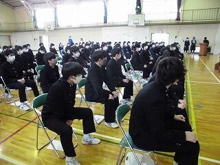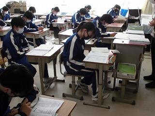 先日の3年生の進路集会では、「最後まで後輩達に良い後ろ姿を見せてあげて欲しい。」ということをお願いしました。すでに進路が確定している生徒もいますが、頑張っている仲間達の妨げにならぬよう一人一人が意識して「良い後ろ姿を見せられるように」生活してくれているようです。3年生の学年のチームワークの良さを感じます。ともかくコロナ感染等、例年よりも気を遣いながらの追い込みになりますが,持てる力を100%発揮し、全員が成功できるよう祈っています。 (文責 飯田)
