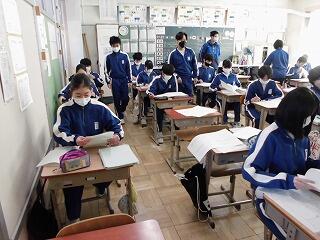 授業で特に制限が厳しくなったのは、声を発する場面等での生徒同士の距離感です。やはり音楽での合唱や家庭科の調理実習、理科での話し合い活動や声かけ等が必要な実験観察等です。学級や学年を超えての活動も実施しづらいため、委員会活動や3年生を送る会の実行委員会も、時にはタブレットを使ったリモートや、大きな部屋で十分に距離感を保って行う等の工夫をしています。