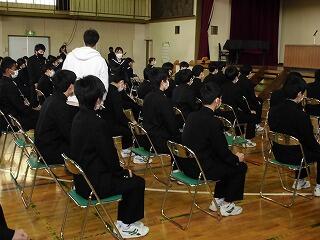 節目となる始業式等では、「志を持つこと」や「感謝の気持ちを持つこと」等について話してきました。特に「感謝」については、繰り返し話しました。今日まで保護者や地域の方々に支えられ立派に育てていただき、こうして多くの仲間と共に、卒業式を迎えられたことへも感謝の気持ちを忘れてはなりません。これからも常に感謝の気持ちを持ち続けてください。