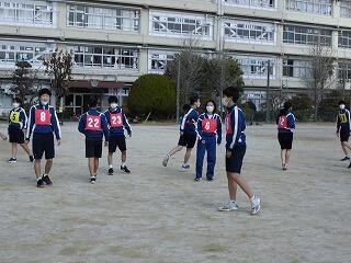 卒業を祝うかのような穏やかな天候の中、3年生のレク大会が行われました。卒業式練習と同様、学年委員が全体をリードしており,3人の担任は生徒のゼッケンと同じ色の服に身を包み、生徒と同化して応援・声援に専念していました。