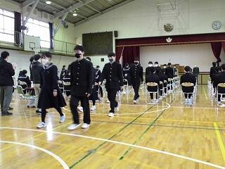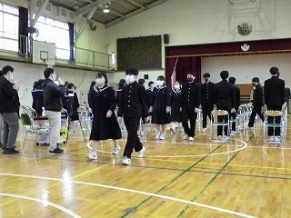 式に臨む3年生の態度は本当に立派です。 「退場」の練習です。