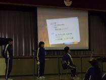 生徒はタブレットを使ってプレゼン資料を作成したり,自作した絵を実物投影機で映したりするなどして,今回の集会ではICTの活用を積極的に行っています。