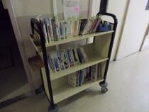 図書室の利用を増やすために,2学年のフロアで本の貸出ができるようにした「移動図書館」がはじまりました。学校図書館指導員の先生と学習図書委員会が取り組んでいます。