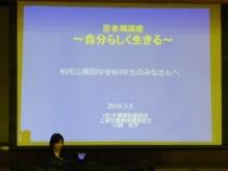 本日1・2校時に3年生は,千葉県助産師会の小路和子先生を講師としてお招きし,思春期講演~自分らしくいきる~というテーマで講演を行っていただきました。貴重なお話をいただき,生徒達は真剣な様子で話を聞いていました。写真はその様子です。