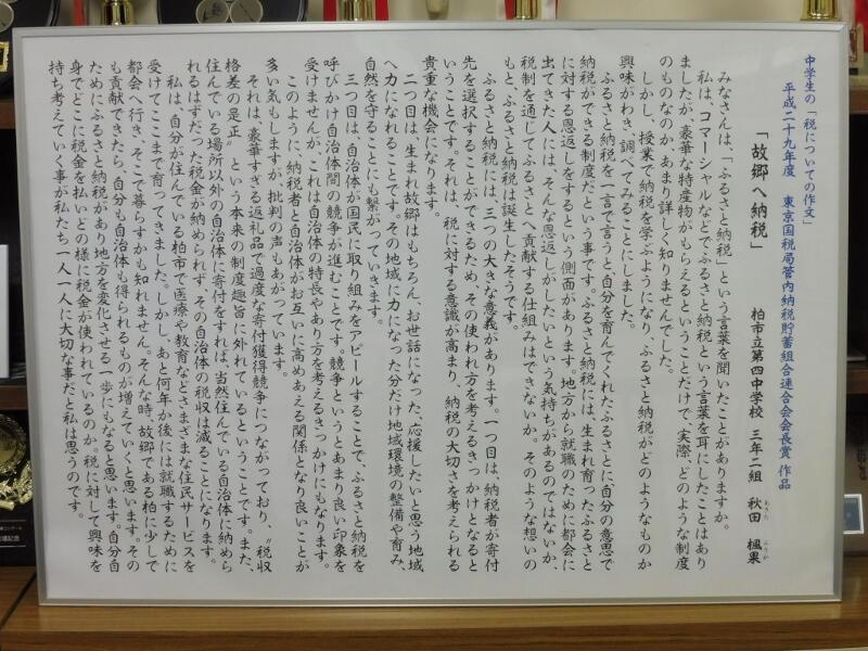 中学生の「税についての作文」において本校3年女子生徒の作品が,東京都国税局管内納税貯蓄組合連合会会長賞をいただきました。