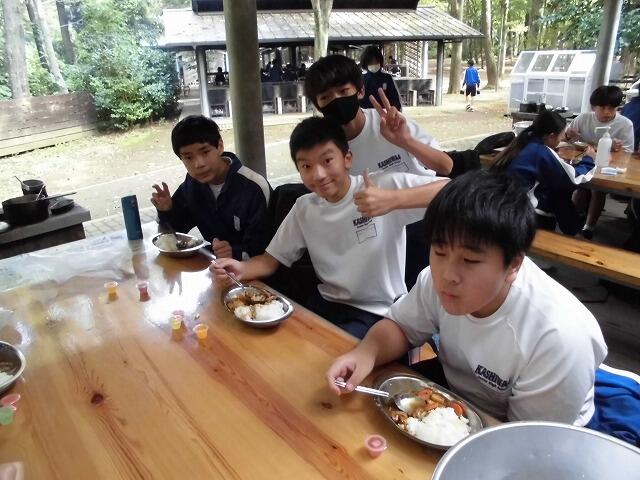 自分たちが作ったご飯とカレー、誰に聞いても、「美味しいです!」との答えが返ってきました。これからも様々な体験的活動(学習)を通じて、たくましく成長して欲しいです。(文責 飯田)