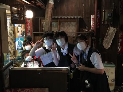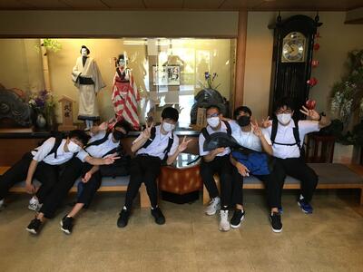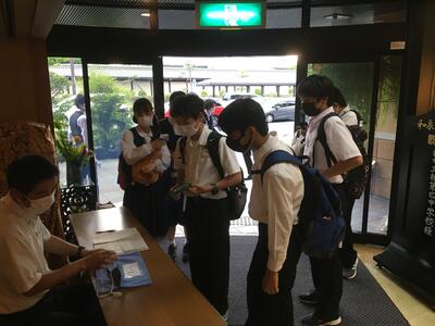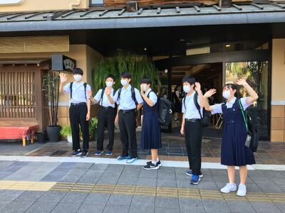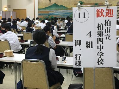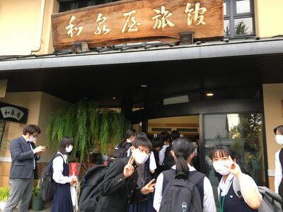 生徒達が女将さんの前に並んでいる画像は、生徒代表入館挨拶の模様です。中三らしいキリッとした話ぶりでした。