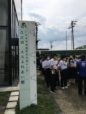 午前、福島県いわき市久之浜の大久ふれあい館に到着。大震災後の津波について学びました。