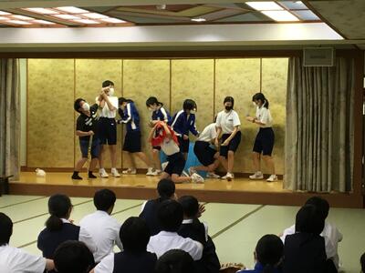 2年生は新たなクラスメイトと打ち解け合い、3年生はクラスの結束をさらに深め合っている様子でした。運営や準備などは生徒が中心となり、「全員が楽しめる」をテーマに頑張っていました。そのおかげで大いに盛り上がり、生徒たちの笑顔が輝いていました。(文責宮下)