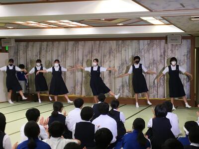 本日はCF(キャンプファイヤー)やフォークダンスについて学年全体で確認をし、当日の活動がスムーズに行われるよう、隊形移動やダンスの練習を行いました。フォークダンスの練習では初めは気恥ずかしさもある様子でしたが、練習を重ねるうちに動きもきちんと理解し、音楽に合わせて積極的に体を動かす様子が見られました。