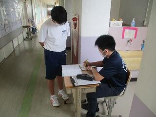 朝の健康観察で微熱(37度未満)の生徒が1名います。その他の生徒は皆元気。「まだ帰りたくないです!」と言ってます。今日もペットボトル2本配付します。水分は十分過ぎるくらいだと思われます。