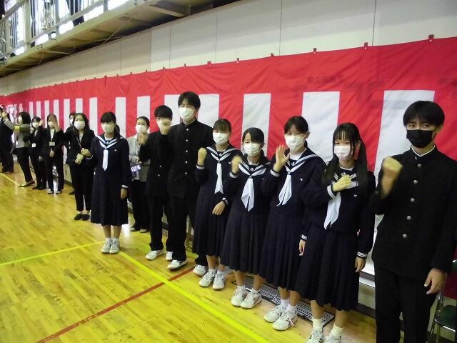 画像は、生徒会が企画・運営してくれた「総合体育大会・各種コンクール壮行会」の様子です。それぞれの部が最後の大会等に向けての決意表明をし、全校生徒による応援をしました。熱中症対策で1、2年生は急きょ教室でのリモート参加となりましたが、応援の場面では皆立ち上がり、一生懸命に手拍子での応援をしてくれていたとのことです。全校応援をリードしてくれた応援団の皆さん、急な変更にも関わらず、しっかりと運営してくれた生徒会の皆さん、ありがとうございました。