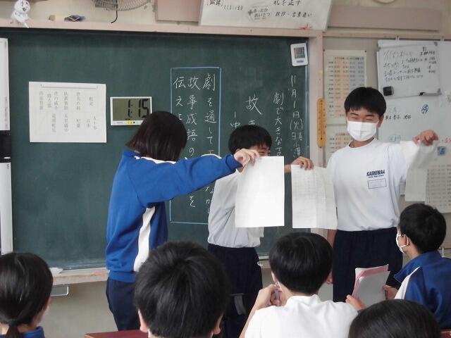 「国語」劇を通して故事成語を皆に伝えることが課題です。それぞれ工夫を凝らしました。
