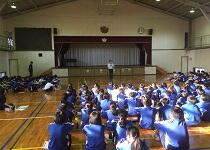 写真は集会の様子(職場体験学習の諸注意について確認しているところ)です。