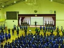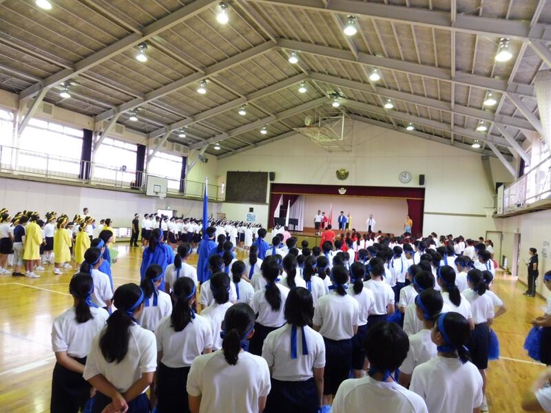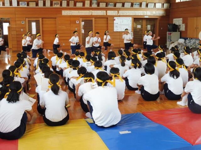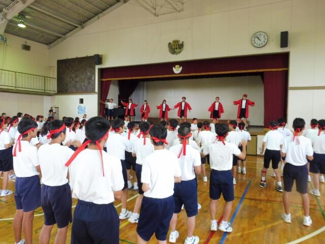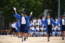 本日より体育祭練習が始まりました。写真は応援団を中心としたエール交換の練習です。雨が降ったため、屋内での活動となりましたが、限られた時間を大切に練習に励んでいました。