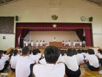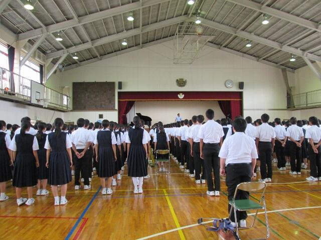 2学期が始まりました。始業式では,校歌を大きな声でていねいに歌いあげていました。また,先生方や友人に大きな声で気持ちよく挨拶する生徒もたくさんいました。