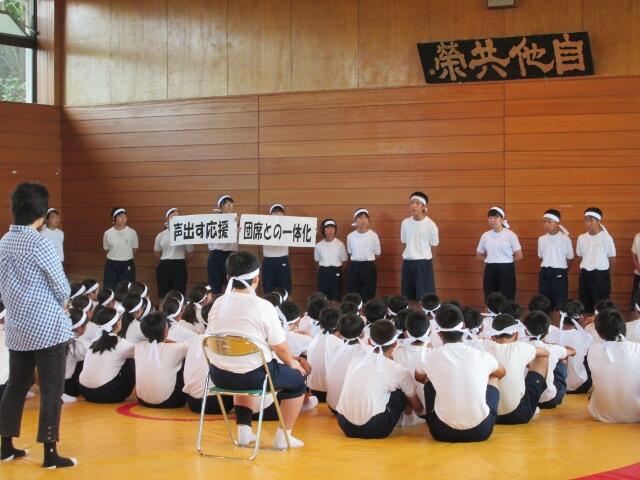 いよいよ明日が体育祭となりました。応援練習では,生徒達の気合いの入った応援が校庭や校舎内に響いていました。明日に向けて各色真剣に取り組んでいます。前日準備も無事に終わらせることができました。明日も良い天気になることを祈っています。