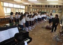音楽は合唱について学習しています。自分のパートの音とりができるようになるとともに、他パートの声を聞きながら学級でひとつの作品(混声三部合唱)になるよう取り組んでいます。