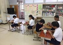 1校時は家庭科の時間でした。10月6日(土)に行われる市内合同運動会で使用する手作りクラッカーを作成していました。材料は紙コップ、毛糸、輪ゴムです。合同運動会のどの場面で活用するのか楽しみですね。