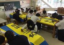市内駅伝や東葛飾駅伝大会に向けて、各学年の有志による横断幕作成が進んでいます。学級ごとに応援メッセージを書き込み大会直前に部員に渡す予定です。みんなの思いが選手の気持ちに火をつけ、力になることを願います。
