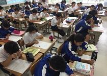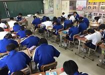 朝学習を8時10分から10分間行っています。本来は朝読書の時間帯ですが、テスト前の期間は学習図書委員会が作成した予想問題をテスト前学習として、各学級で取り組んでいます。いつも以上に真剣な取り組みです。