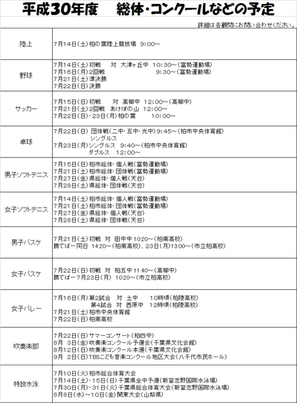 今年度の各部活の総体・コンクールの予定を掲載します。