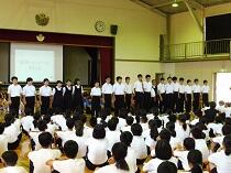 7月10日に、総合体育大会・各種コンクール壮行会を行いました。どの部活も、思いのこもった力強い発表をしていました。また、応援団を中心に、柏四中の健闘を祈って、大きな声で応援をしました。