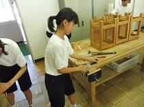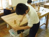 木を鋸(のこぎり)や糸鋸(いとのこ)で切ったり、鑢(やすり)で削ったりして加工しています。慣れない作業ではありますが、一人ひとりが緊張感を持って、丁寧に作業を行っています。