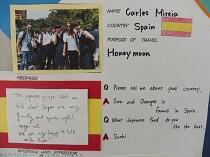 3年生は、5月末の修学旅行で外国人の方へのインタビューをし、英字新聞作りをしました。名前や出身地、日本へ来た目的などを英語で質問し、一緒に撮影した写真とともにまとめました。