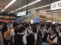 現在、新幹線で東京へ向かっています。学校到着は19時ごろを予定しています。