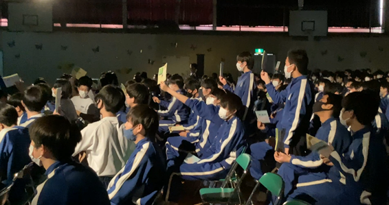 本年度は、体育館に全学年が一堂に会しての開催です。1,2年生の生徒会本部にとっては、自分たちだけで企画・運営する初めての大行事になります。