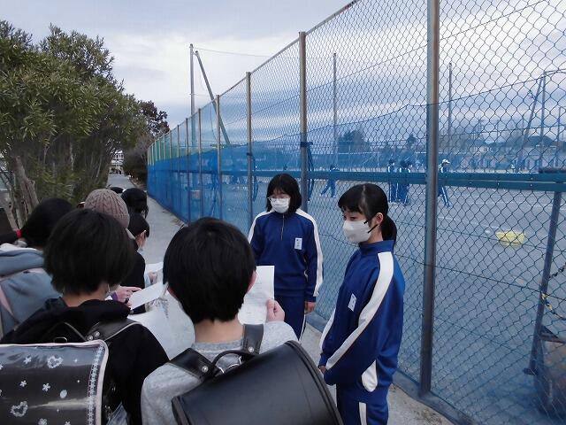 迎える側の中学生側も、先輩としての活躍の場です。担当の先生たちからは「君たちの対応で四中のイメージが決まります」「笑顔で明るく接っしましょう」等の励ましの言葉がありました。