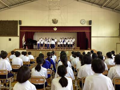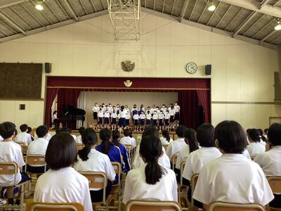 6時間目に、体育館で「校歌コンテスト」を行いました。