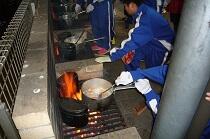 一番早くできた班の食事風景 続々と「いただきます」の声が