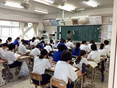 ゴールデンウィーク明けで雨も降っていますが、生徒たちは集中して授業に取り組んでいます。