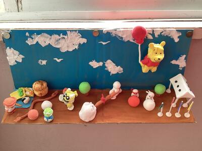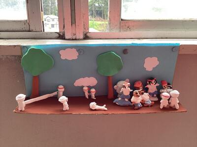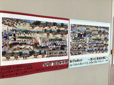 階段の踊り場には、カルチャー部が制作した体育祭に関する作品が飾られています。今週末から体育祭に向けた練習も始まります。